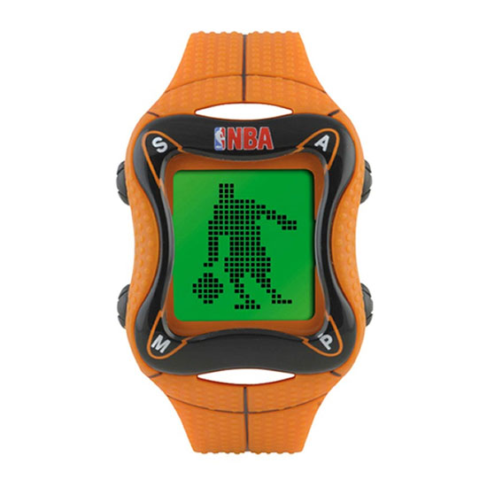 Shown here is a digital watch boasting a fun basketball theme. The plastic case and watch band imitate the look and texture of real basketballs. The digital display comes with an animation function for a whimsical design. This digital watch makes a perfect gift for any young basketball players.