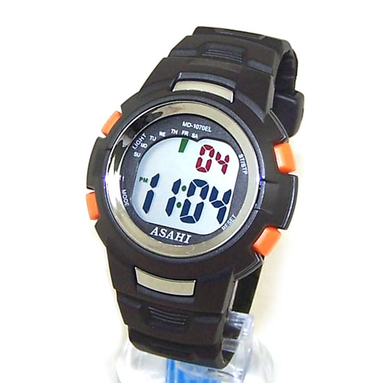 This digital watch features an easy-to-view LCD monitor. It has 3ATM resistance, a stopwatch function and backlight function. The well-designed watch goes well with your daily outfits.