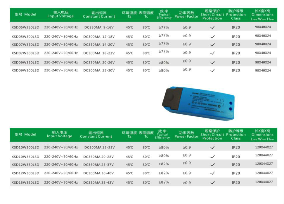 Constant current With SCP, OTP and OVP function