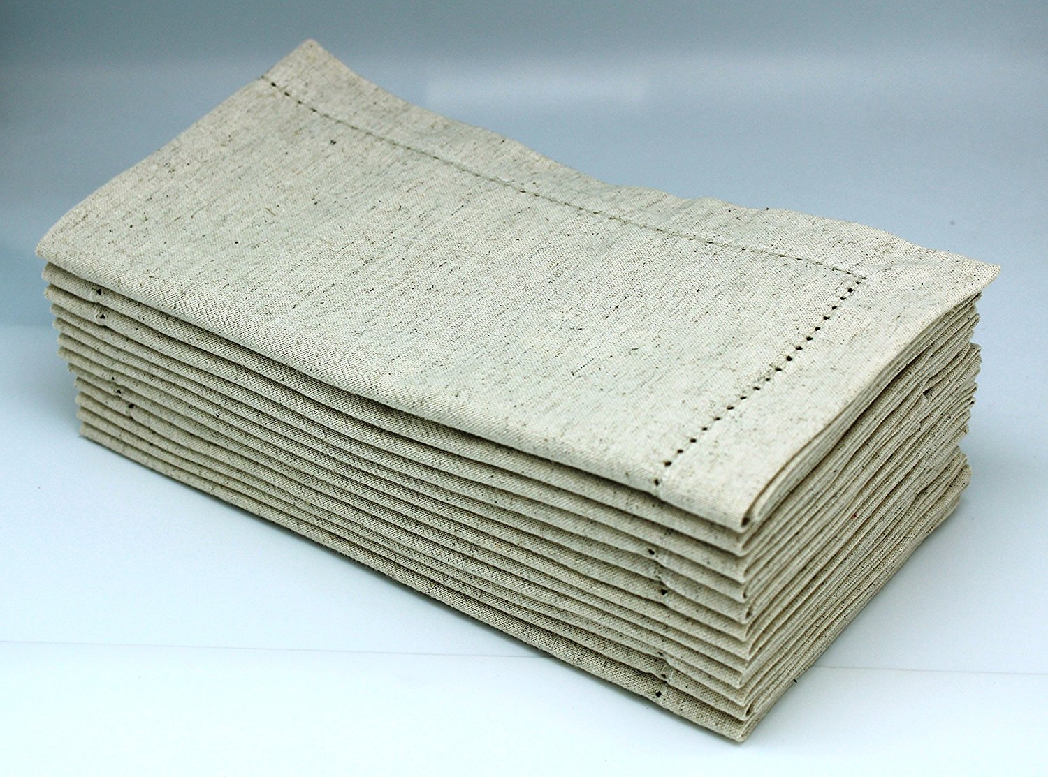 - 20% Linen, 80% Cotton Dinner Napkins (Set of 12). Color - Natural