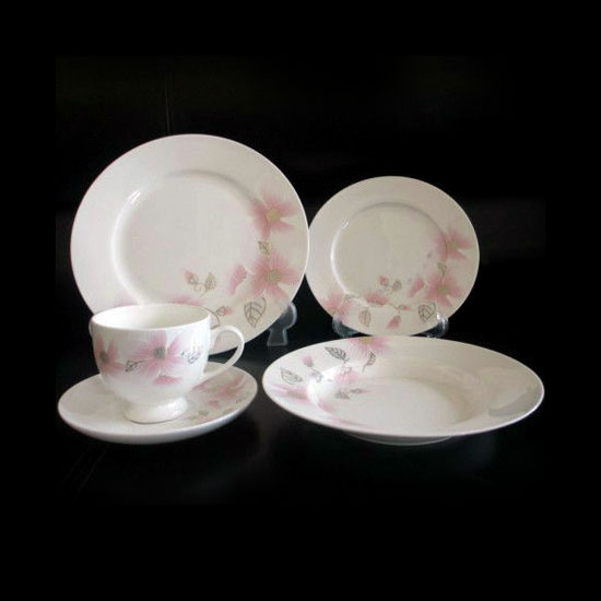 This is a 20-piece dinnerware set with dinner plates, dessert plates, soup plates and so on. It is made of quality porcelain for a long service life. This elegant dinnerware set is ideal for household use.