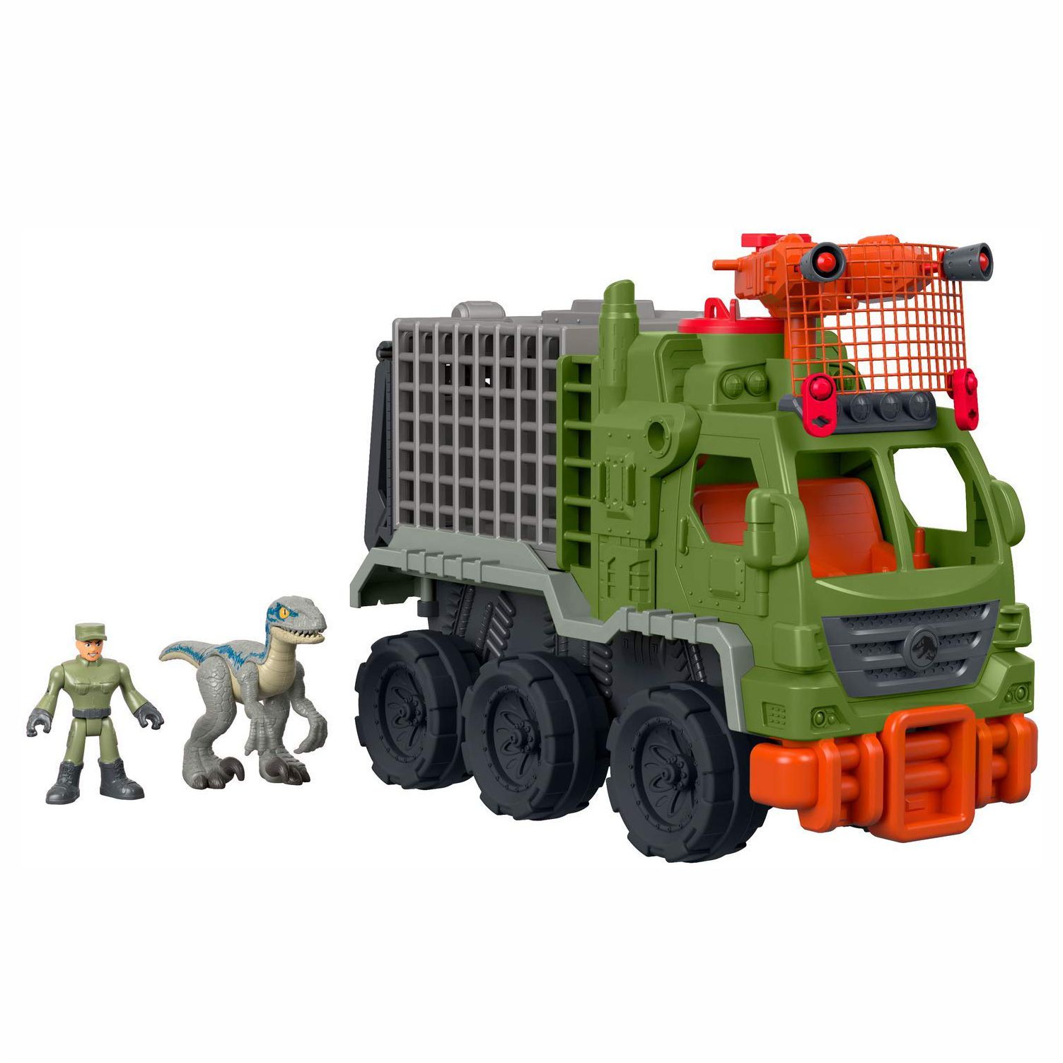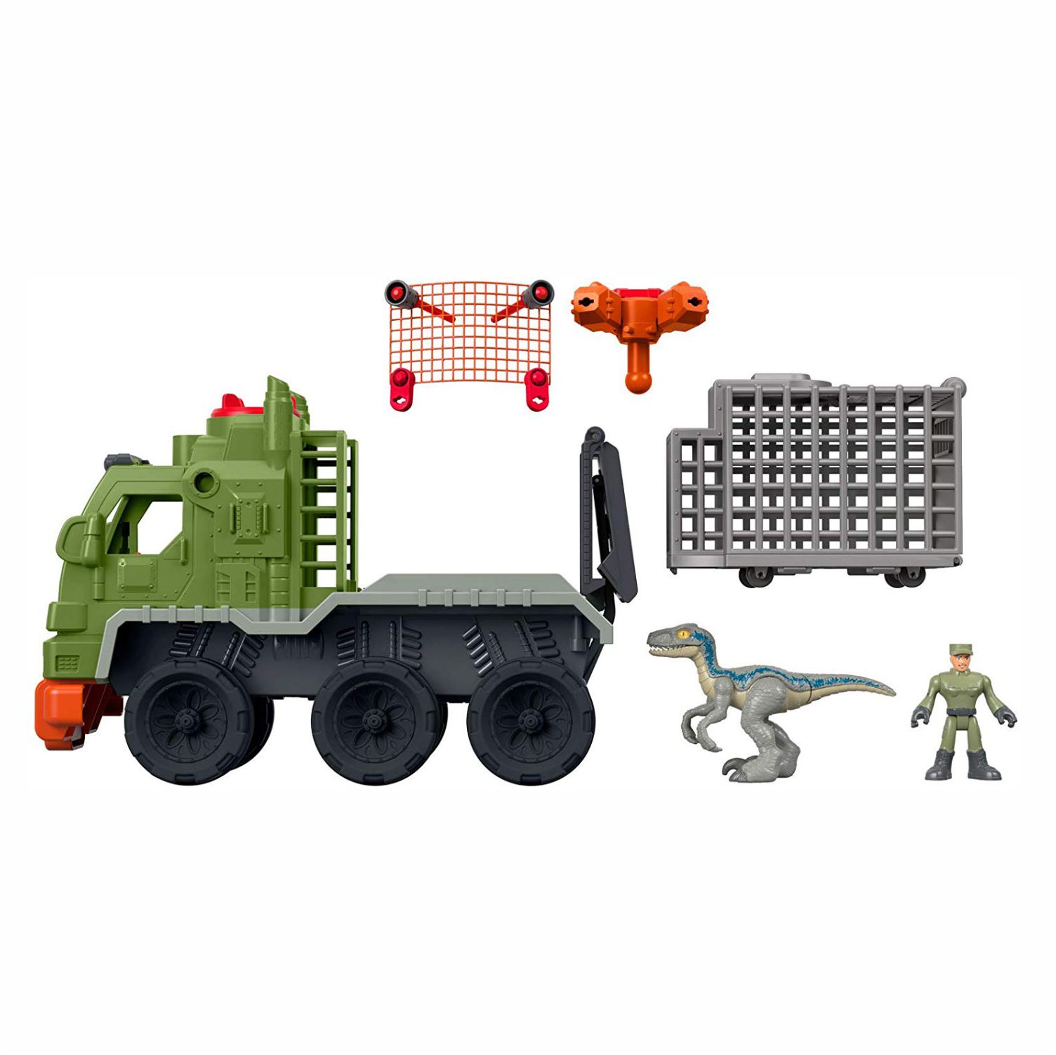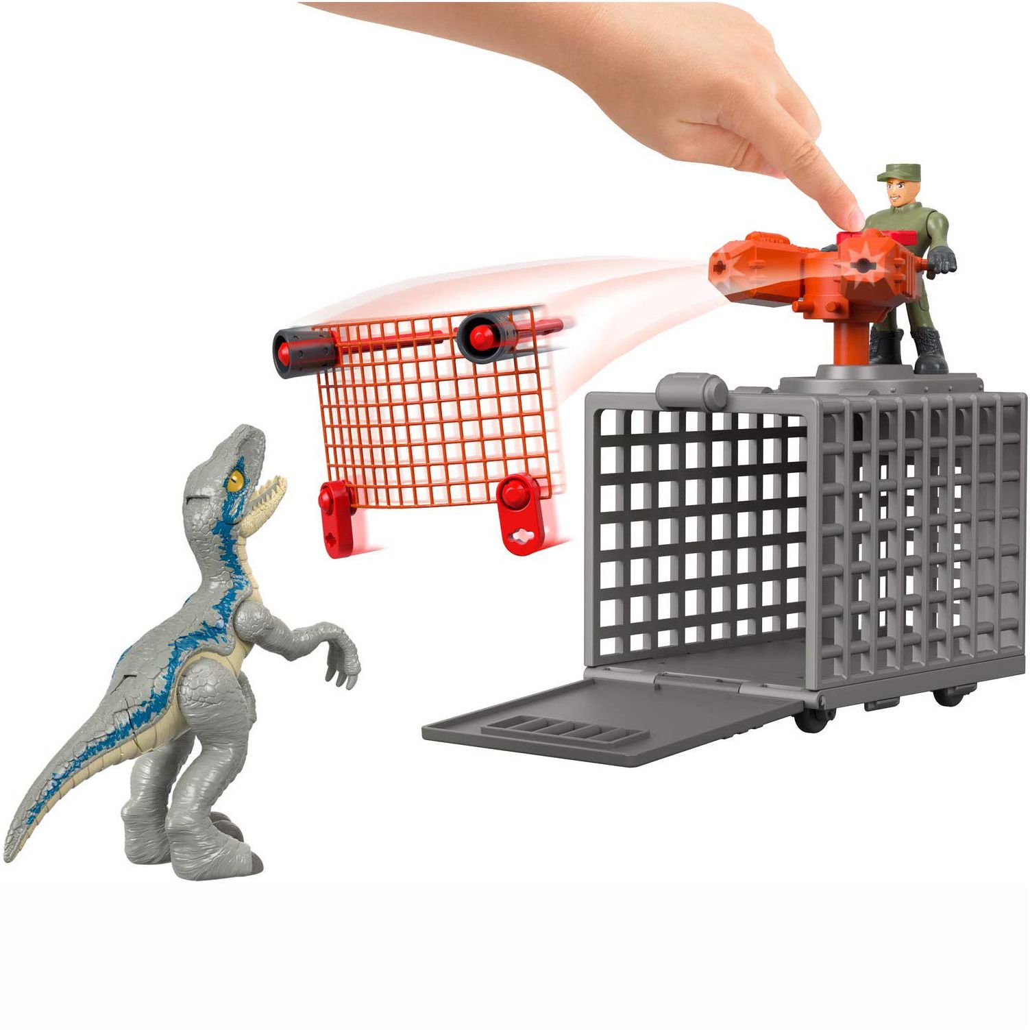 - Includes vehicle, projectile launcher, net projectile, Blue dinosaur figure, and 1 Asset Containment Unit figure