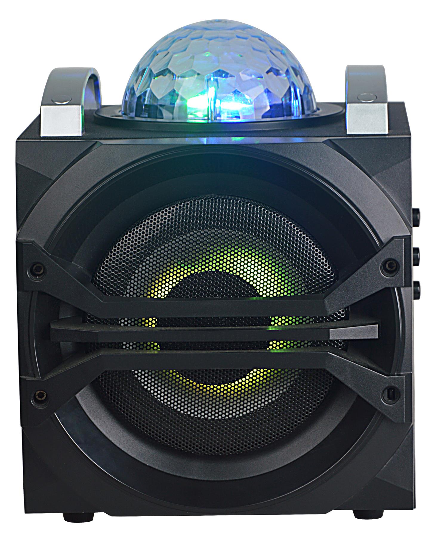 - Bluetooth/USB/FM/3.5mm line in/2 MIC input/disco ball/RGB speaker lighting.