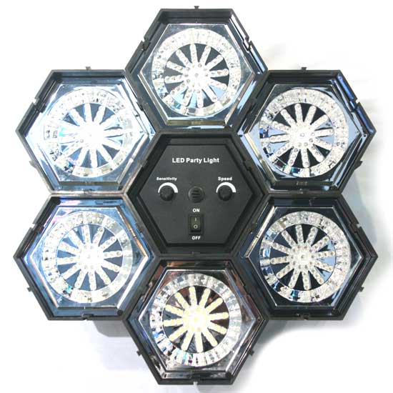 Displayed here is a disco light with a sound-control function that is designed to operate with funky music. The speed-adjustable strobe light is made of quality LEDs to guarantee a long lifespan. This brilliant disco light will illuminate the dancing hall stylishly.