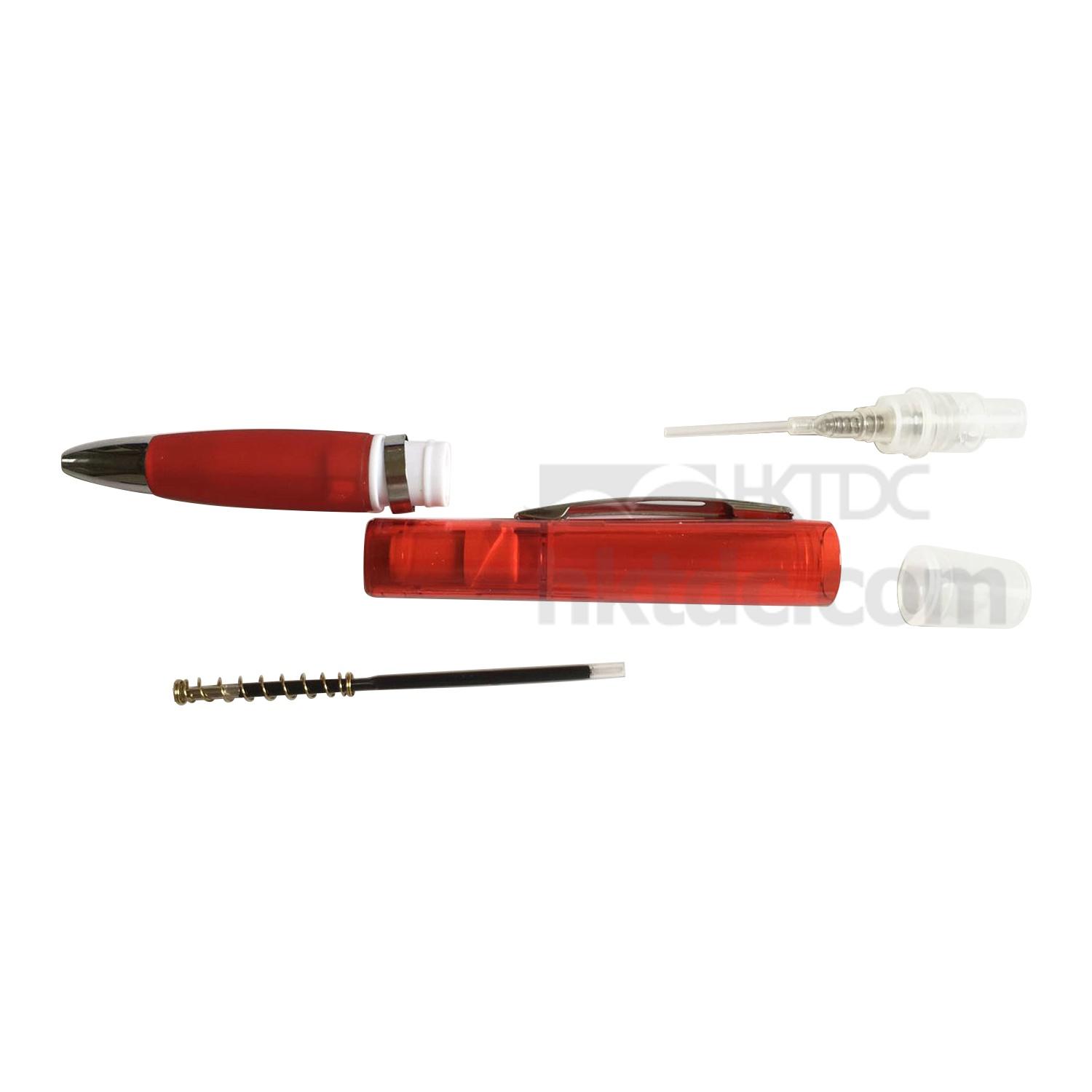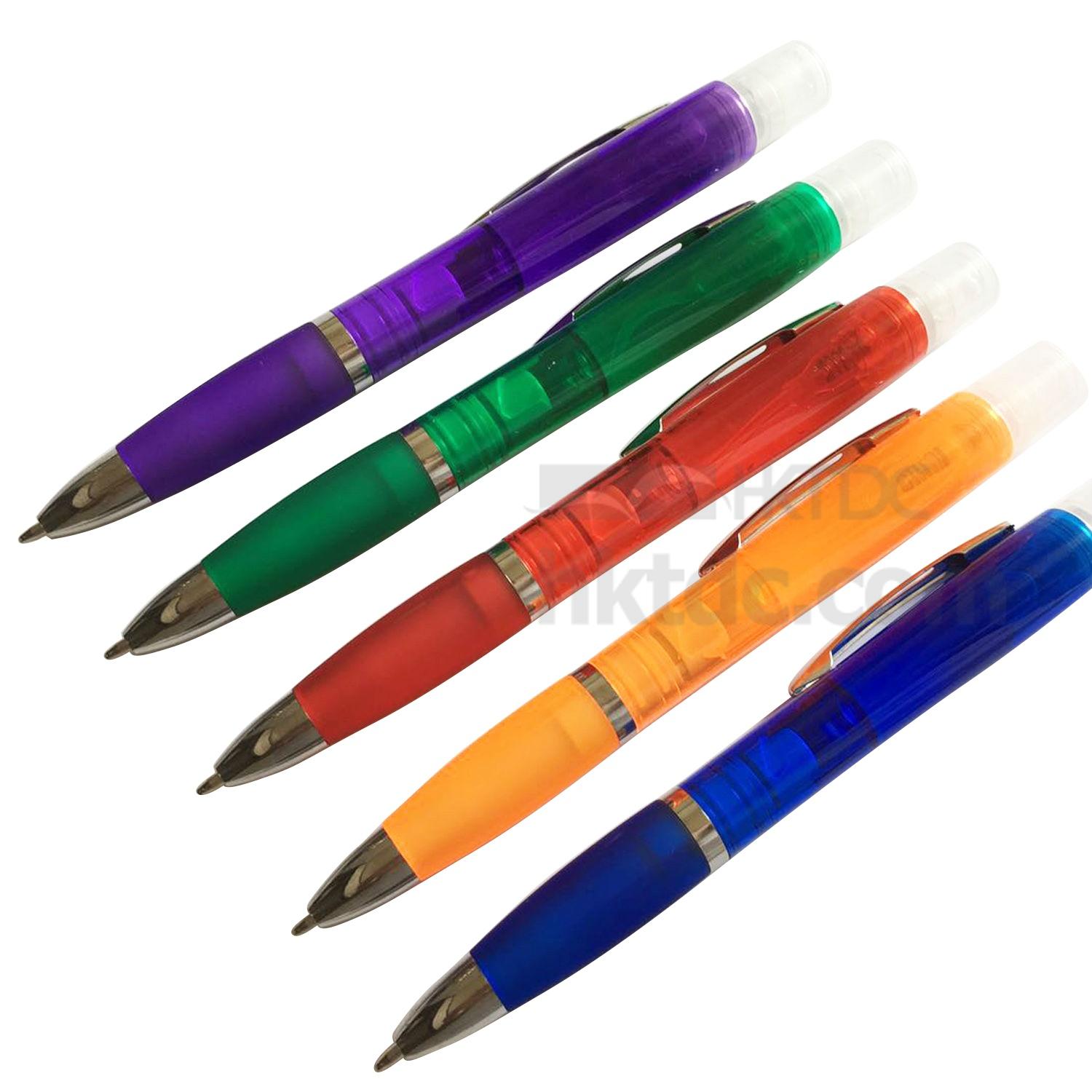 Description: Ball pen with Sprayer, it can be add with Rubbing alcohol;Perfume;Moisturizing water and so on