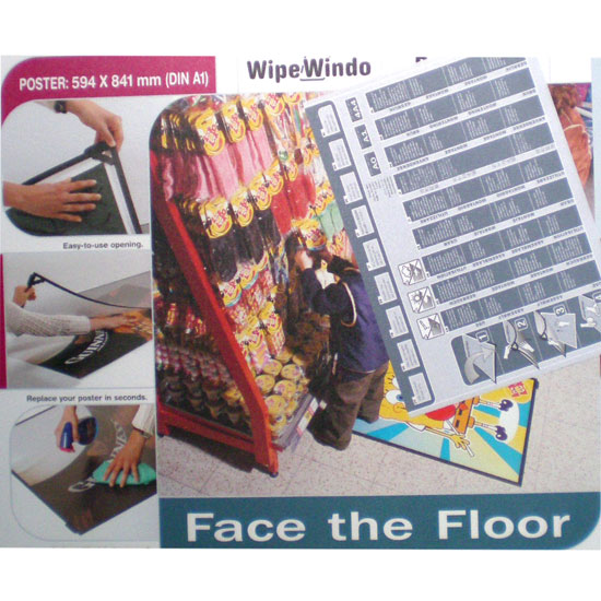 This advertising poster display is an effective entrance mat that protects the floor by removing the dirt, grit, grease and moisture brought in every time a customer enters the store. By combining a large and practical entrance mat along with the power of floor advertising, this poster display provides the perfect solution for creating maximum impact right when your customer enters the store.