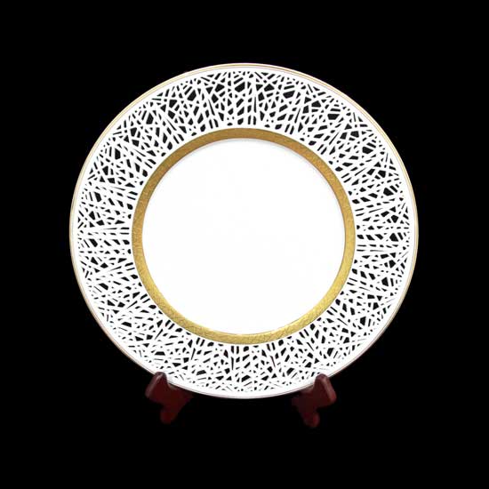 Displayed is a beautiful display plate featuring a leaf pattern in cutout patterns. Made from high-quality bone china, this display plate is truly a piece of art. With a matching stand, this artistic display plate will add a touch of elegance in your living room or anywhere of your preference.