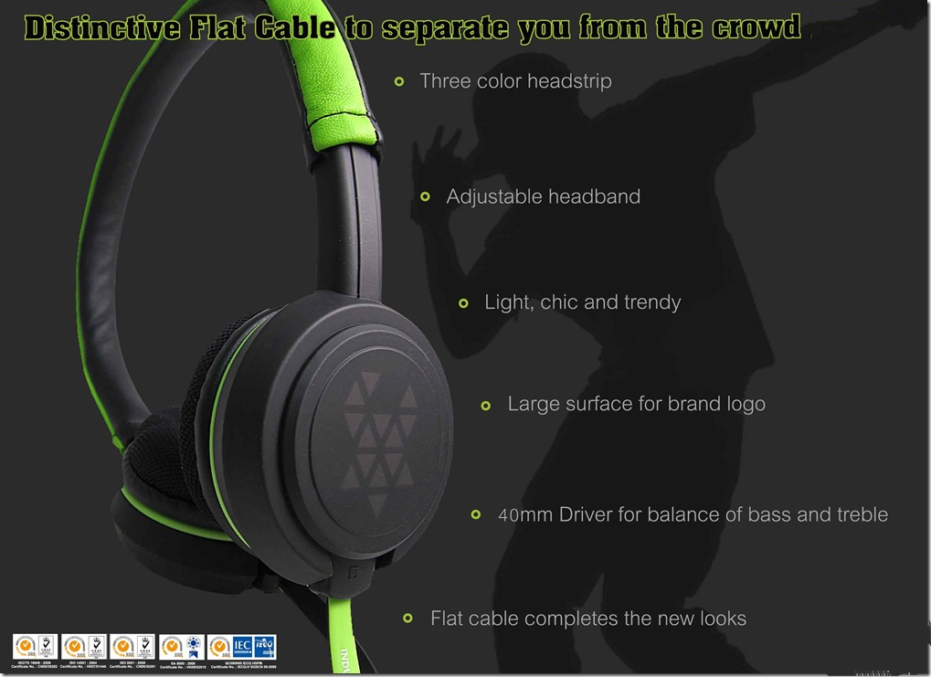 Distinctive Flat Fluorescent Cable Headphones