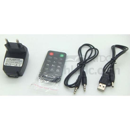 - Included accessories: AC adapter (option). USB cable. 3.5mm audio cable. Remote control. Instruction manual.