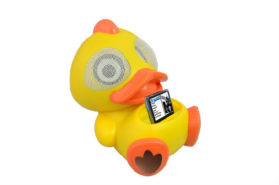 This featured docking speaker comes with the cute look of a cartoon duck. Available in 2 versions: