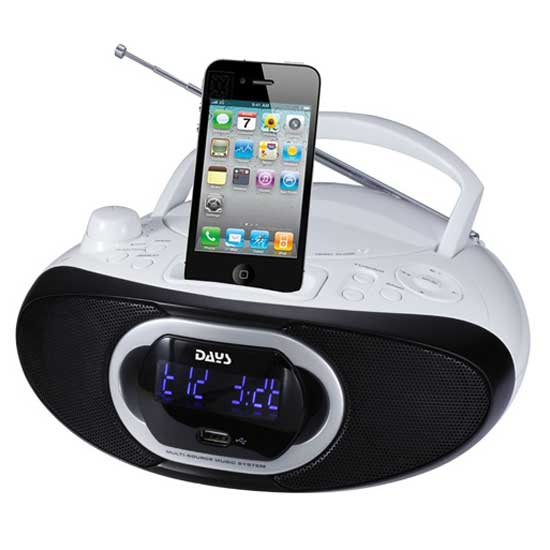 The docking station boombox plays CD music in a range of formats. It also broadcasts FM radio channels for an extra entertainment. The docking station of it can charge both iPhones and iPods.