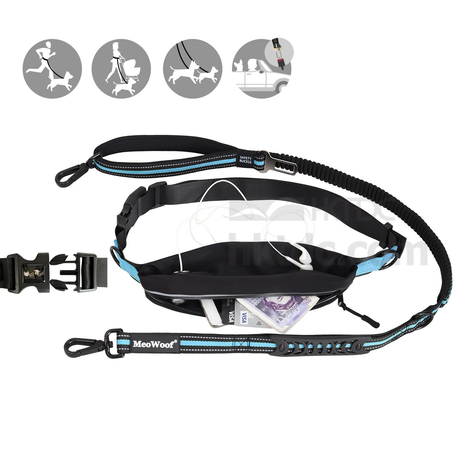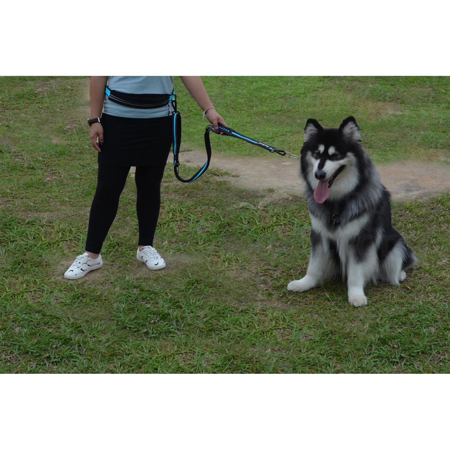 Free Dog Lead for Running / Jogging, Reflective Stitching, Adjustable Waist Belt (22" - 48"), Dog Seat Belt, Phone Pouch, Shock Absorbing Dual Handle