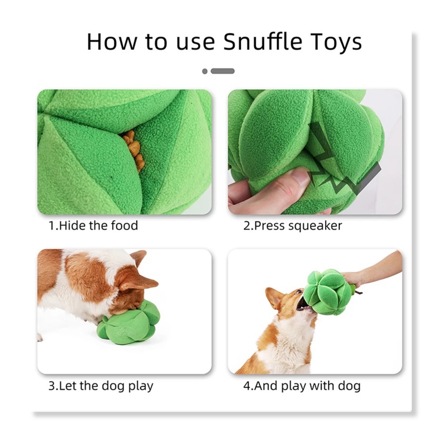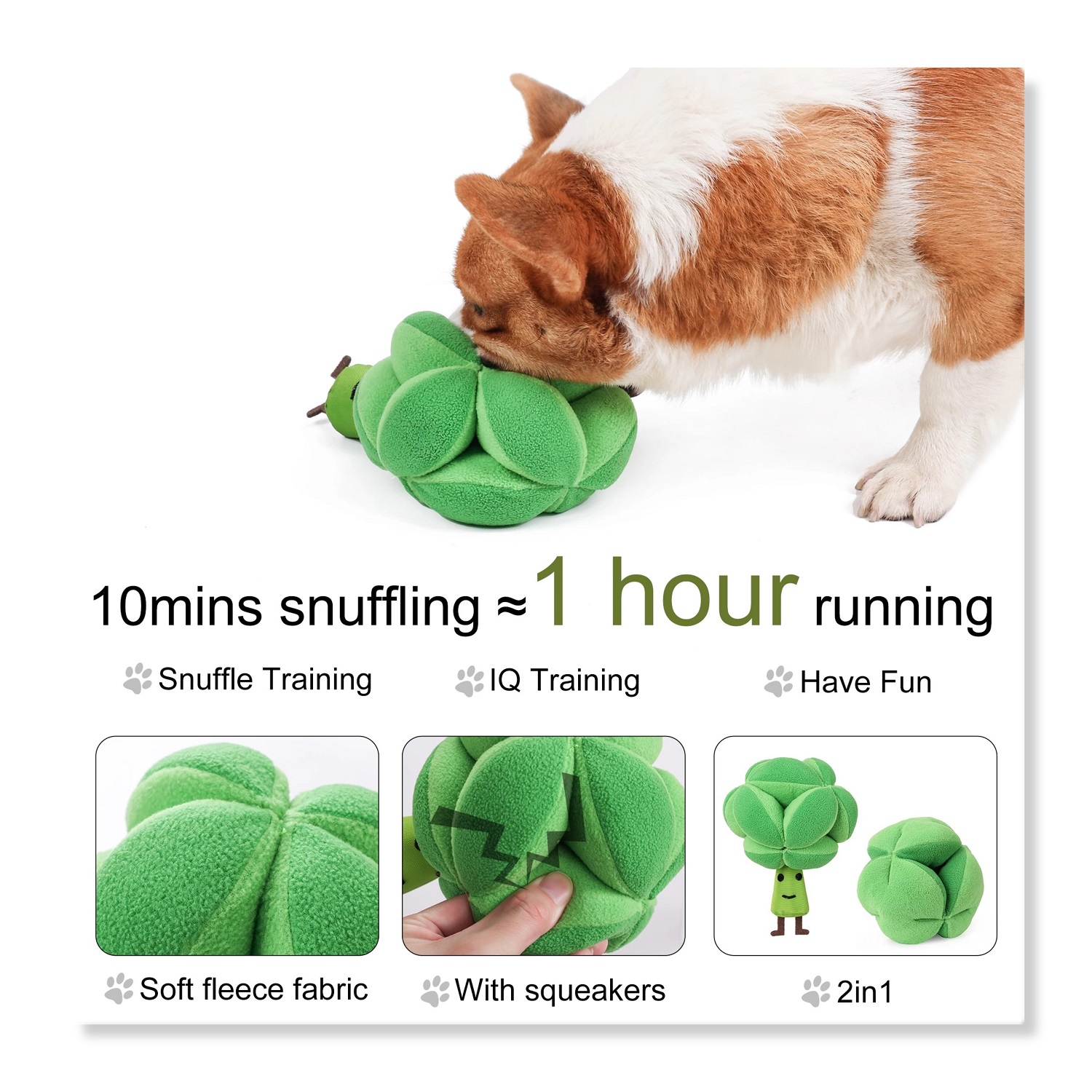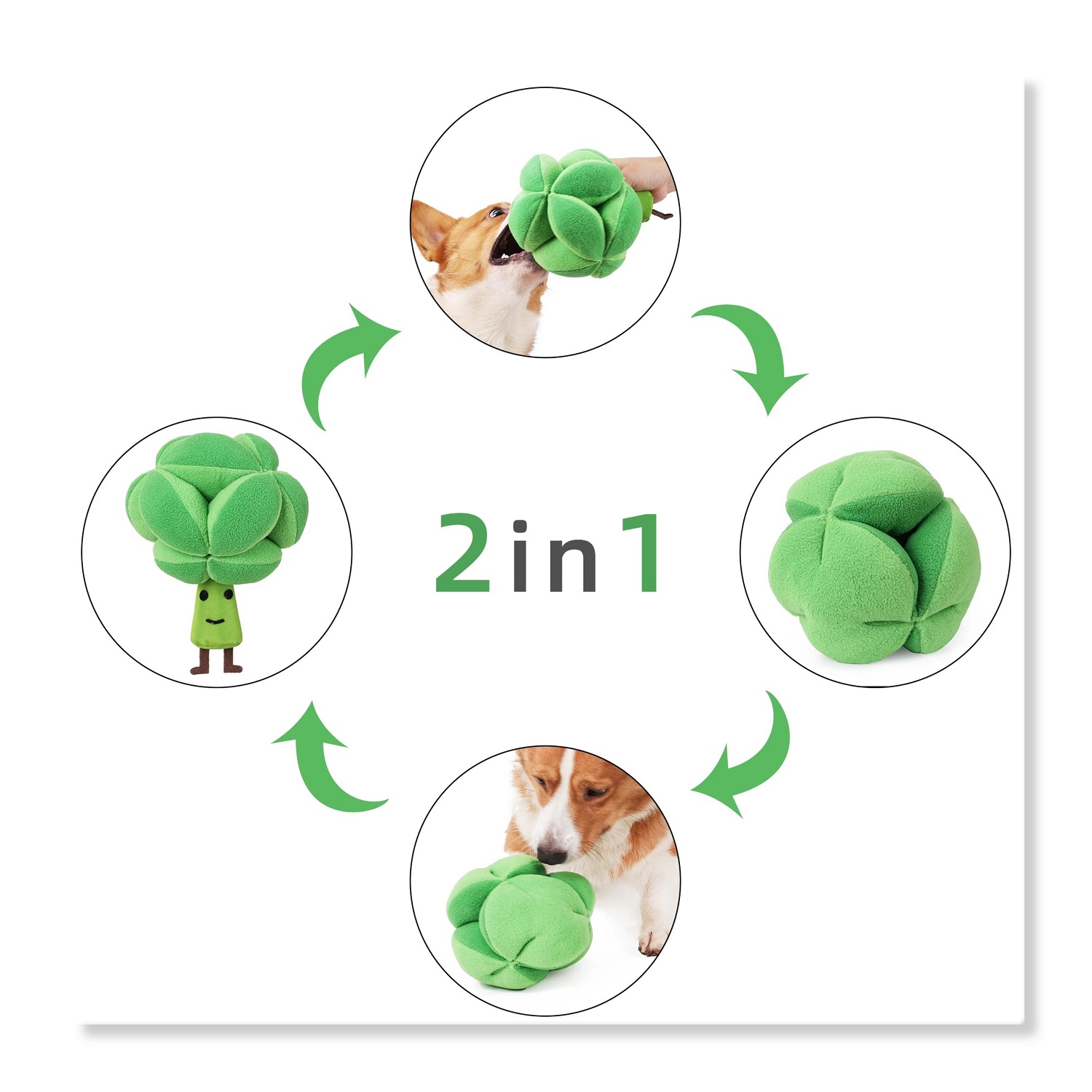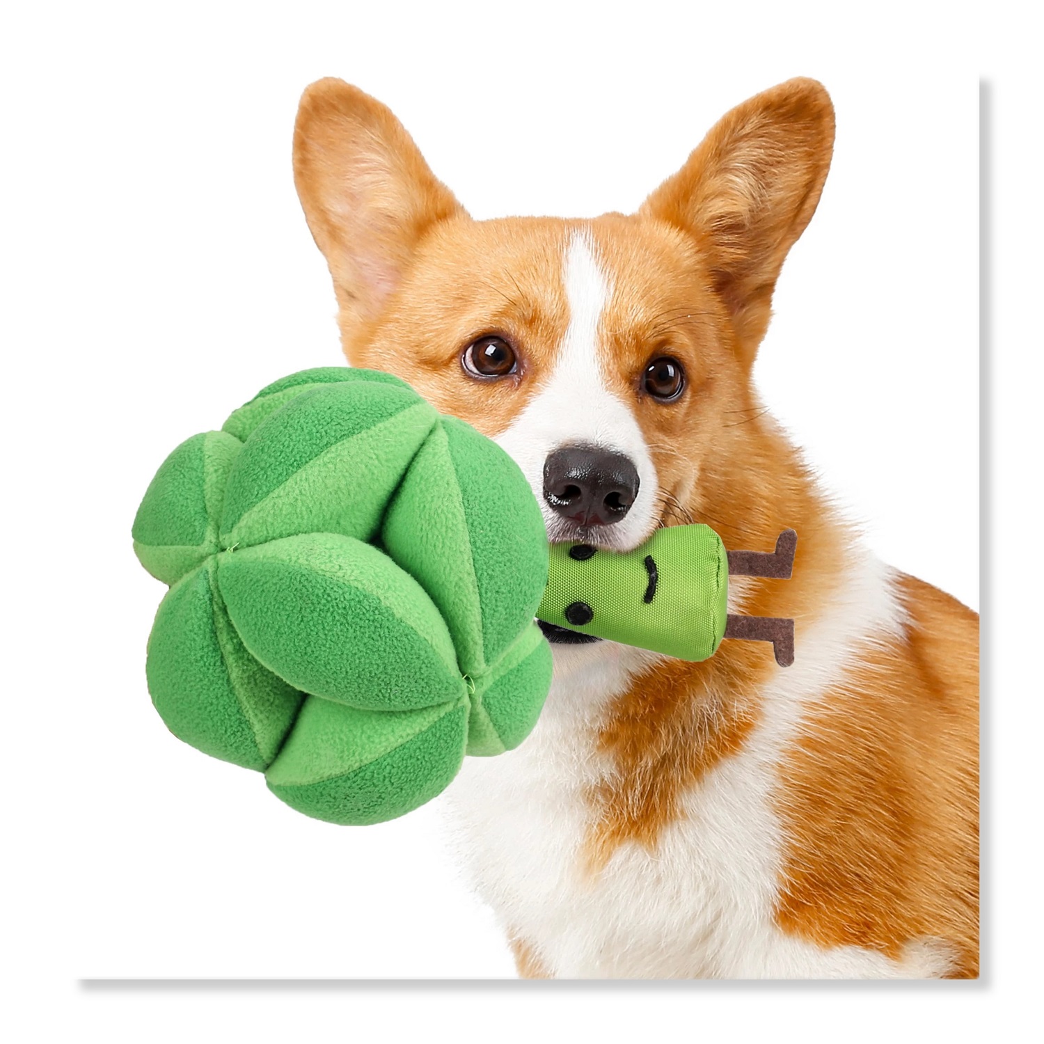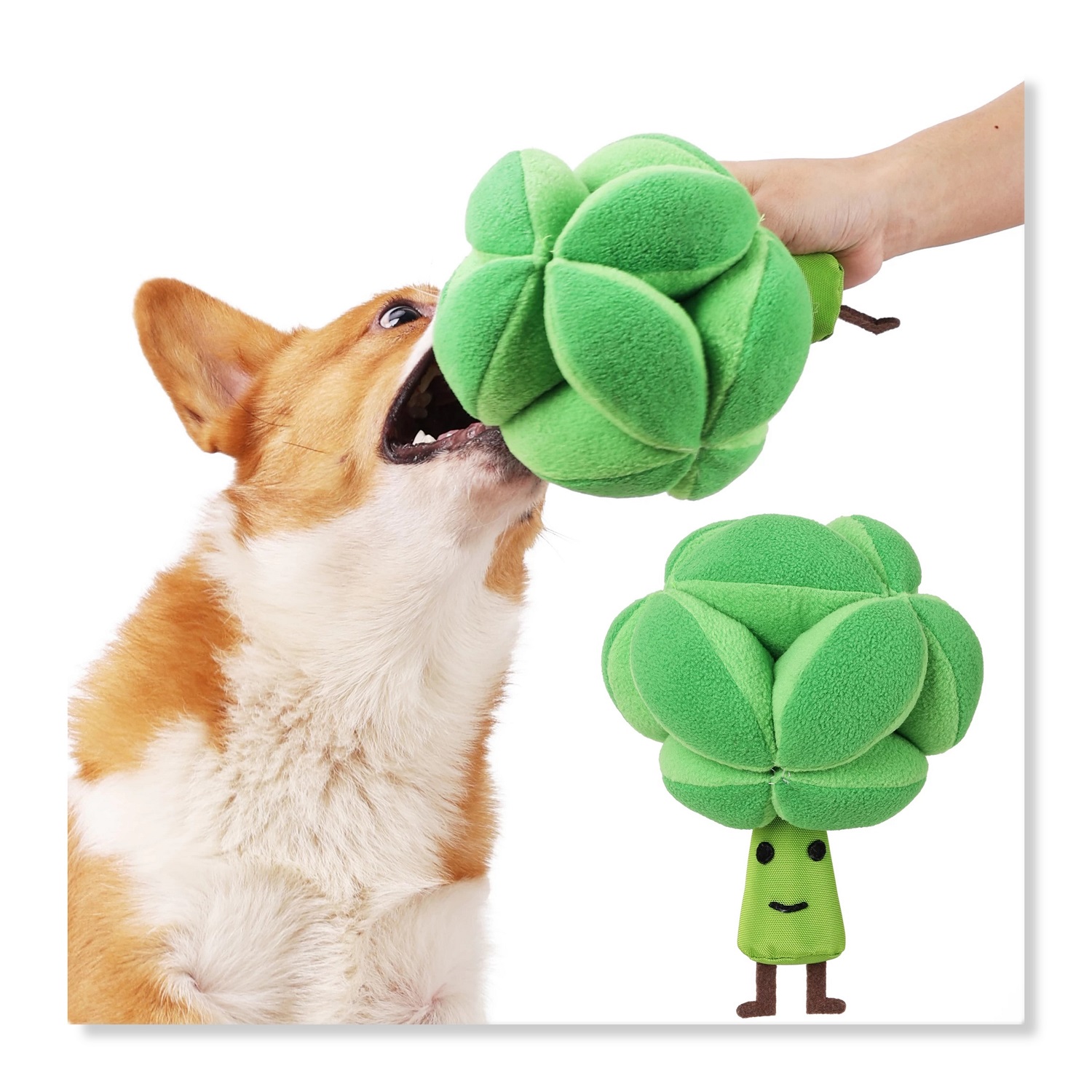 2. HAVE FUN: this toy is in Broccoli shape, looks natural and cute, with squeakers inside