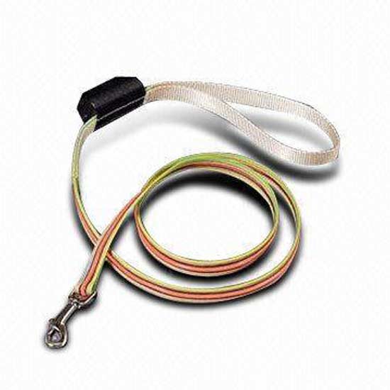 Displayed is an electrical dogs' leash with an innovative press-and-retract mechanism. The nylon and ABS leash is color-dyed for a more attractive look. This futuristic dogs' leash is a great accessory for pets.
