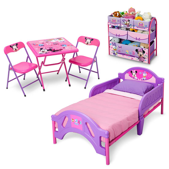 This is a doll furniture set with a bed, a desk, two chairs and a cabinet. It comes with a Minnie Mouse design for an eye-catching look. This doll furniture set is made of quality materials for a long service life.
