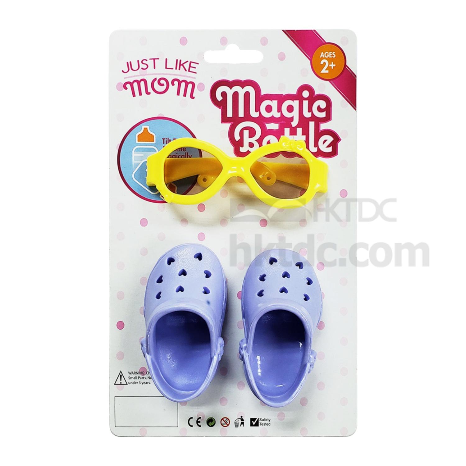 Children can accessorize their precious dolls with this doll shoe set. The set includes a pair of sandals for dolls to wear and a pair of sunglasses for dolls. They are excellent for children to play dress up with their dolls and are suitable for ages 2+.