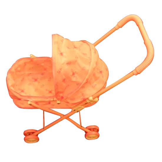 As shown is a 4-wheel doll stroller for kids to carry their favourite dolls around. This doll stroller is best for gift for kids aged 3 or above. Fine fabric and metal are used for a higher durability.