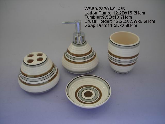 • Dolomite stripe pattern bathroom set, include lotion pump, tumbler, brush holder, soap dish.