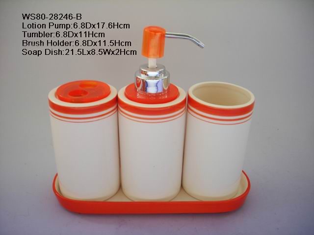 • Dolomite color layer bathroom set, include lotion pump, tumbler/brush holder, soap dish.