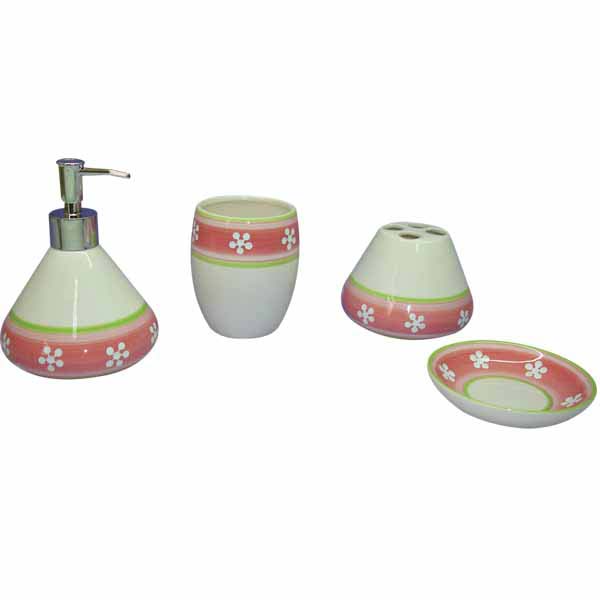 - Set of 4 dolomite bathroom set, include lotion pump, tumbler, brush holder, soap dish.