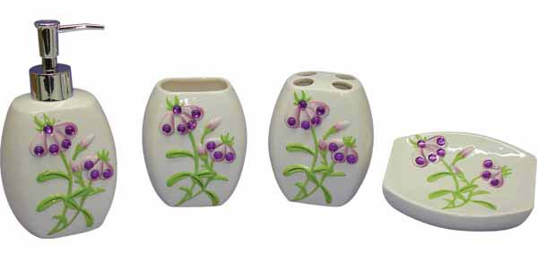 - Dolomite flower pattern bathroom set, include lotion pump, tumbler, brush holder, soap dish.