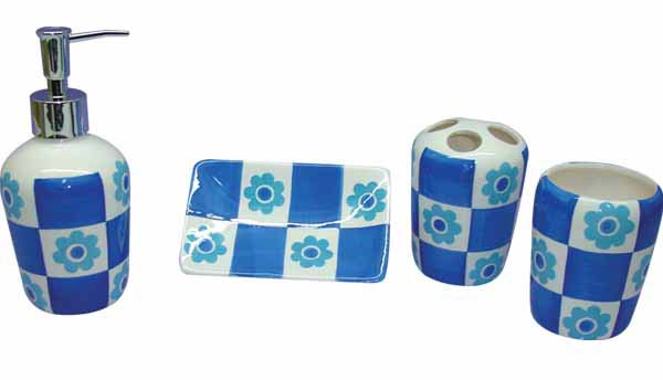 • Dolomite flower pattern bathroom set, include lotion pump, tumbler, brush holder, soap dish.