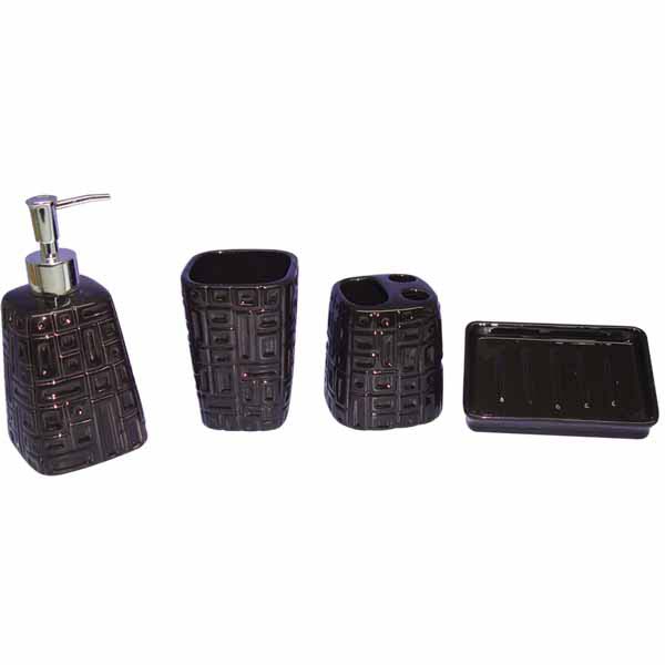 - Set of 4 dolomite bathroom set, include lotion pump, tumbler, brush holder, soap dish.