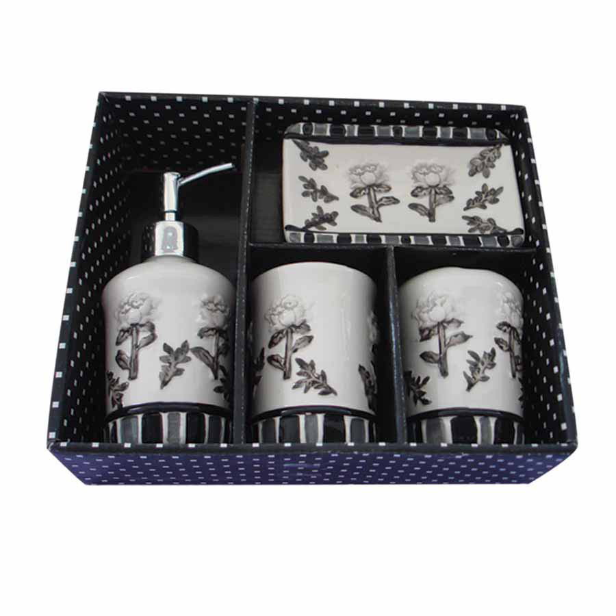 • Set of 4 dolomite bathroom set, include lotion pump, tumbler, brush holder, soap dish.