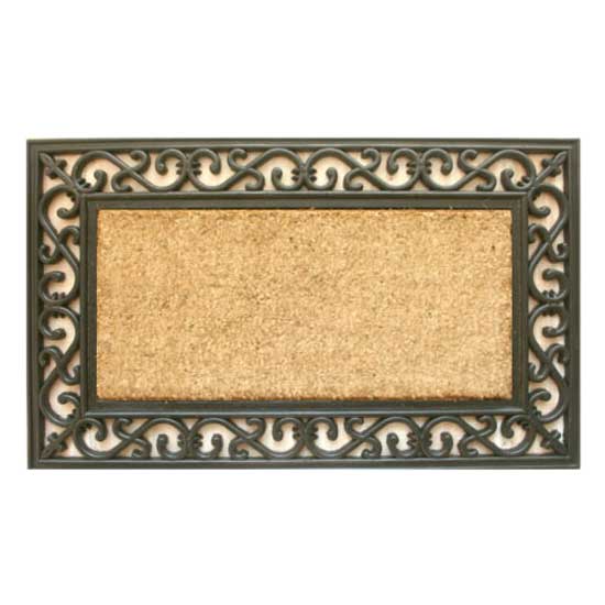 This rectangular door mat is centered with natural coir. The coir material features high resilience, hard wearing and moisture absorbing. The door mat is designed with a beautiful frame, showing nice cutout patterns.