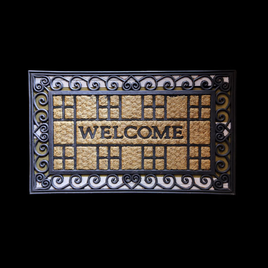 This fashionable door mat is designed in a rectangular shape. It comes with delicate patterns and an English word “welcome”. This door mat is made of quality coir for a long service life.