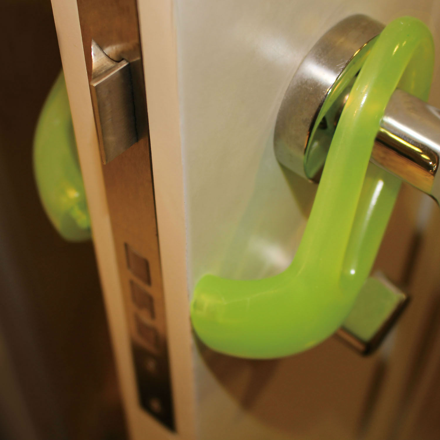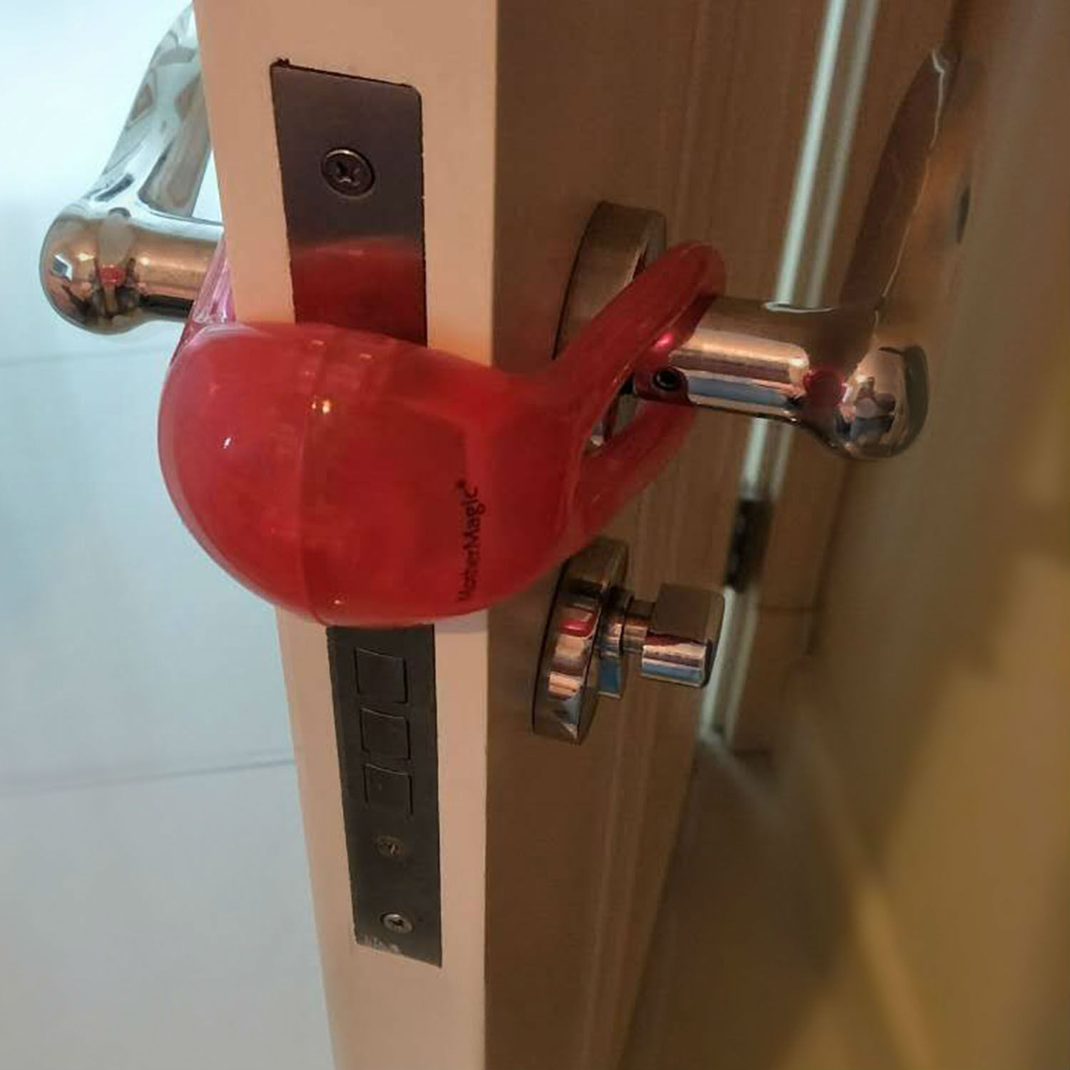 Protect your baby and child from getting hurt while closing the door with this door safety lock. It comes in a two-part design and can be attached to the door handles on both sides of the door. This door safety lock can prevent the door from closing completely and is great for child proofing your home.