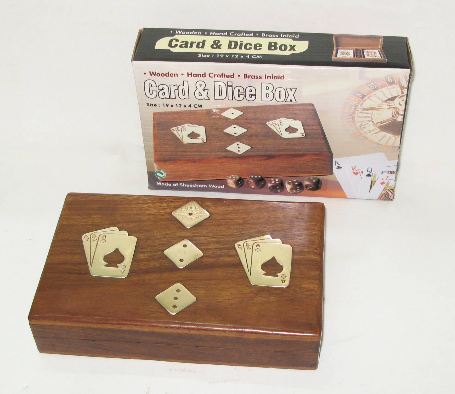 This is a set of double cards and dice box. It is made of sheesham wood and well packed in a colour box.