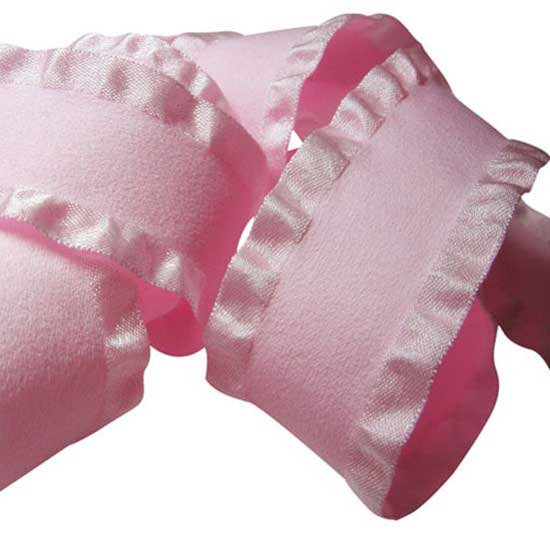 Featured here is a delicate ribbon with double ruffle accents. The ribbon is made of high-quality yarn and dyestuff, offering a delicate appearance and smooth-touching comfort with strong stretch. All sizes and colors are available for your option.