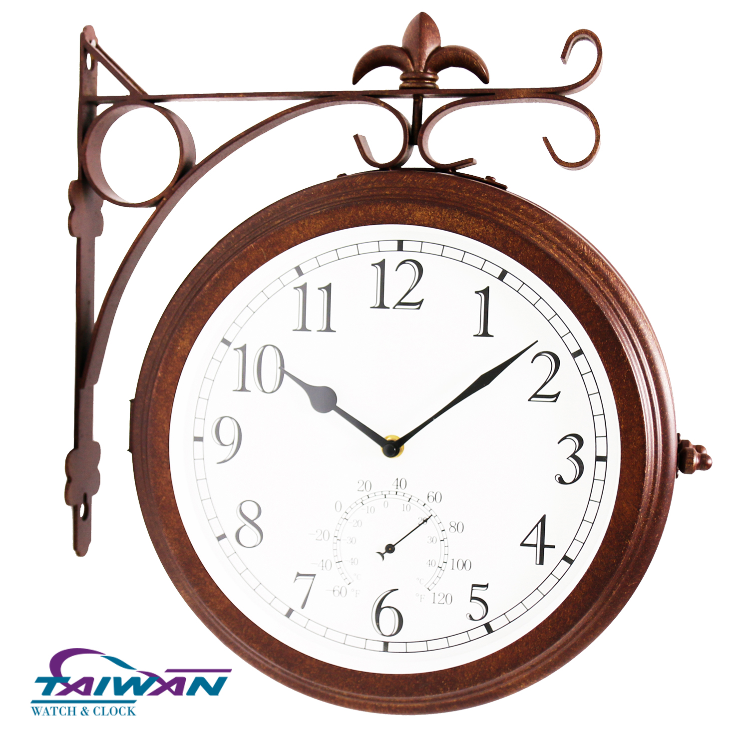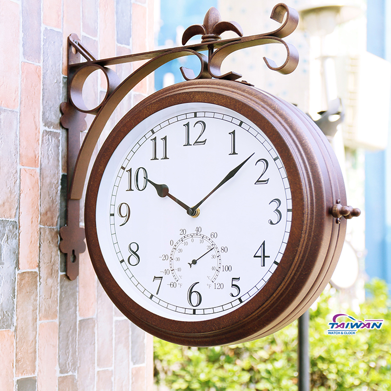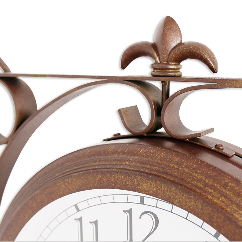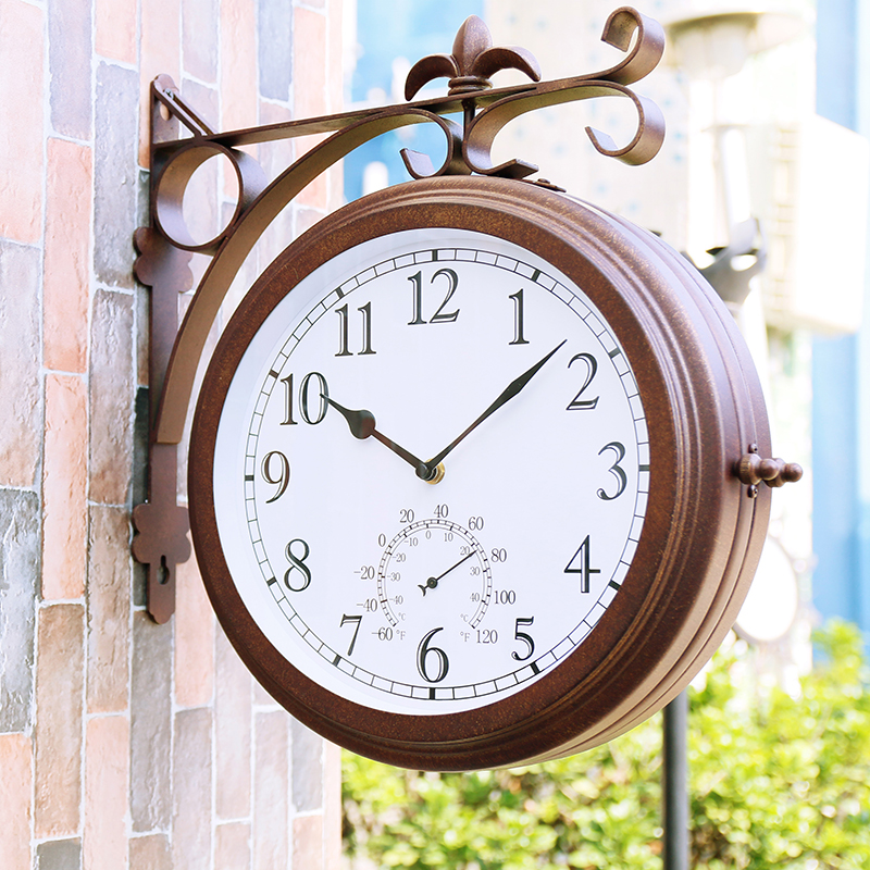 Station decorated rustic wall clock created to last. Two faces and large numbers easy read from a distance. It is ideal for lobby, patio, garden, fence, lanai, farmhouse, yard, porch or corridor.