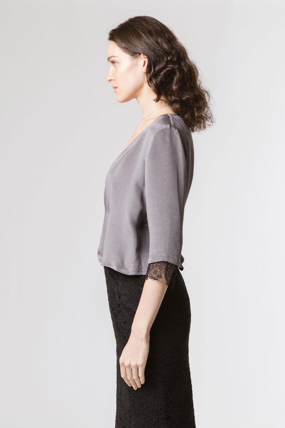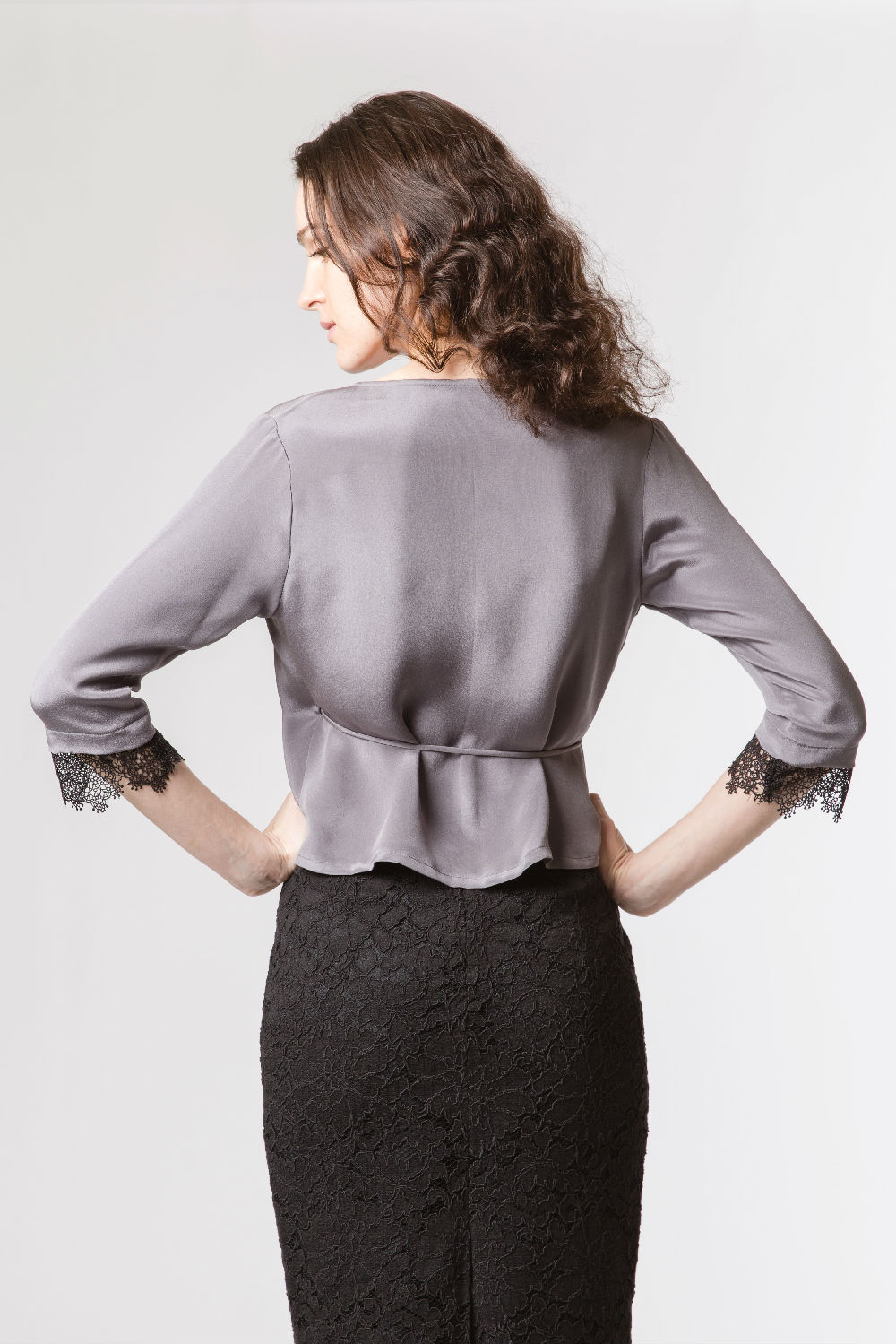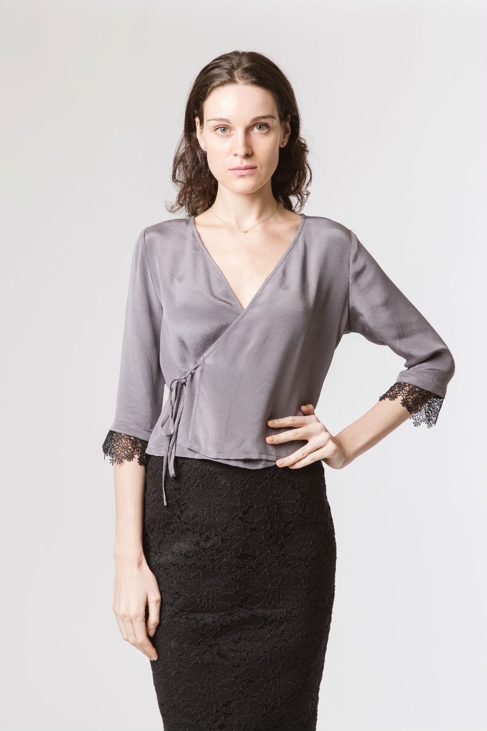 Shine like never before in Dove Grey Silk Wrap Blouse! It accompanied with a belt sash for feminine appeal. It can be worn in 2 ways : an ideal blouse for a business meeting or a cardigan for casual moments!