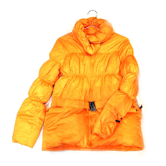 The down coat arrests attention with its vibrant-colored appearance. This knitted piece is filled with rich down for reliable warmth and comfort. It is a practical and stylish addition to your winter wardrobe.
