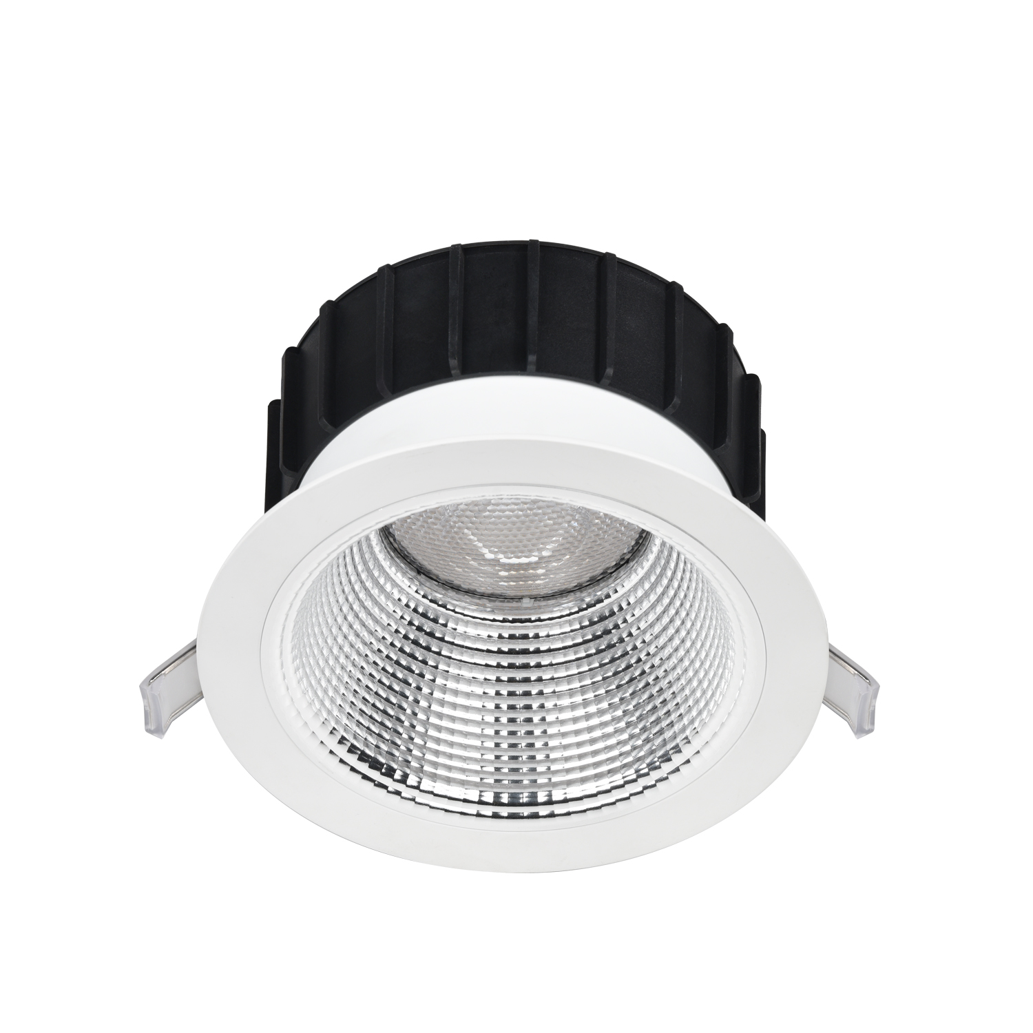 - High cut-off angle for low glare UGR19 controlling faceted reflector