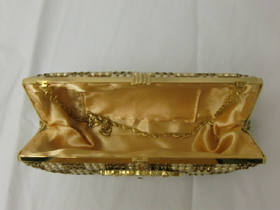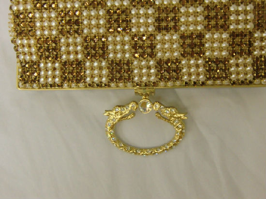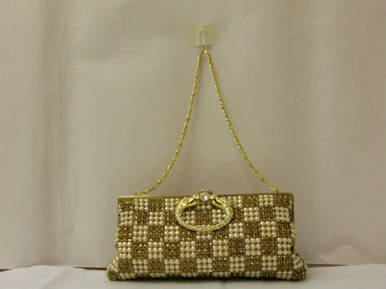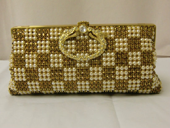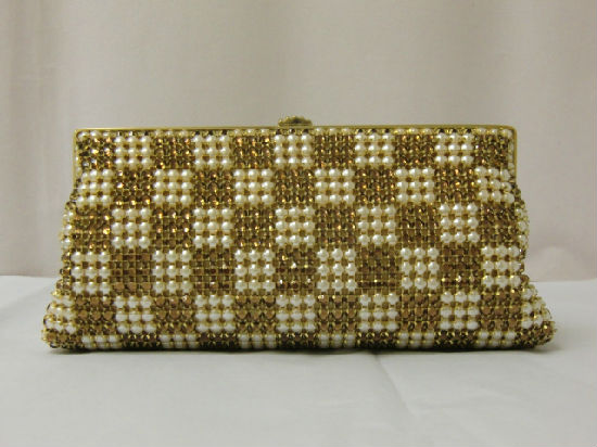 Check pattern crystal cross over synthetic pearl clutch bag.