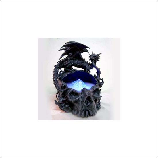 Mist maker in a skeleton head with blue light that makes the mist in blue color.