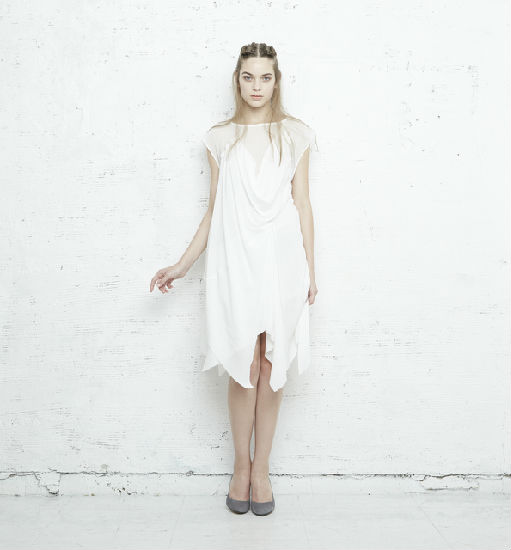 A 2 layer dress with unique draped shape.