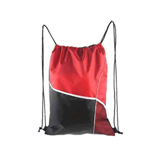 Displayed is a drawstring bag coming with a red and black finish. The bag opening is fastened by a drawstring for added security. Made of 190T polyester, this bag is perfect for everyday use.