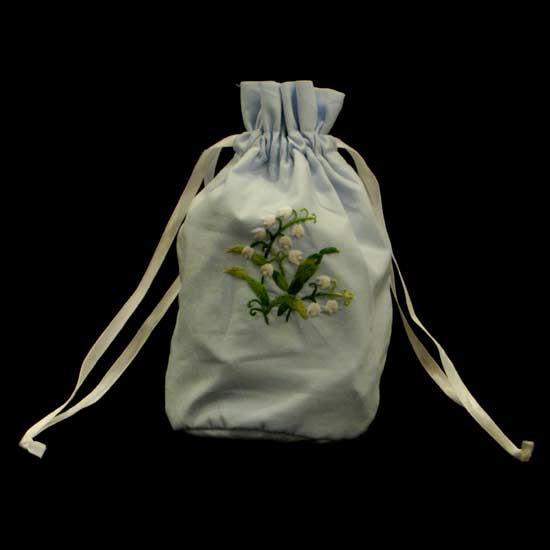 The drawstring pouch bestows a feminine design. The exquisite floral detailing offers a sophisticated touch. The pouch gathers at the top, making it perfect for concealing a special gift.