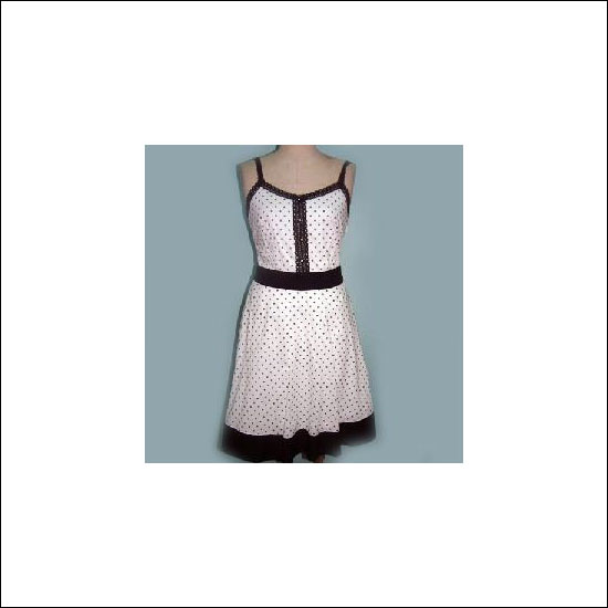 This is a ladies one piece dress that is strapless and reaches knee length.