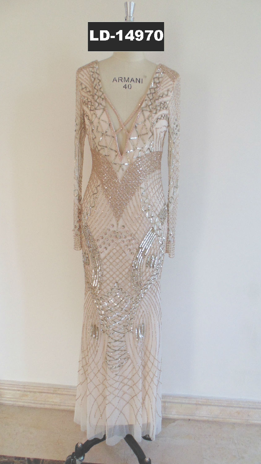 High fashion ladies evening wear hand embroidery long gown
