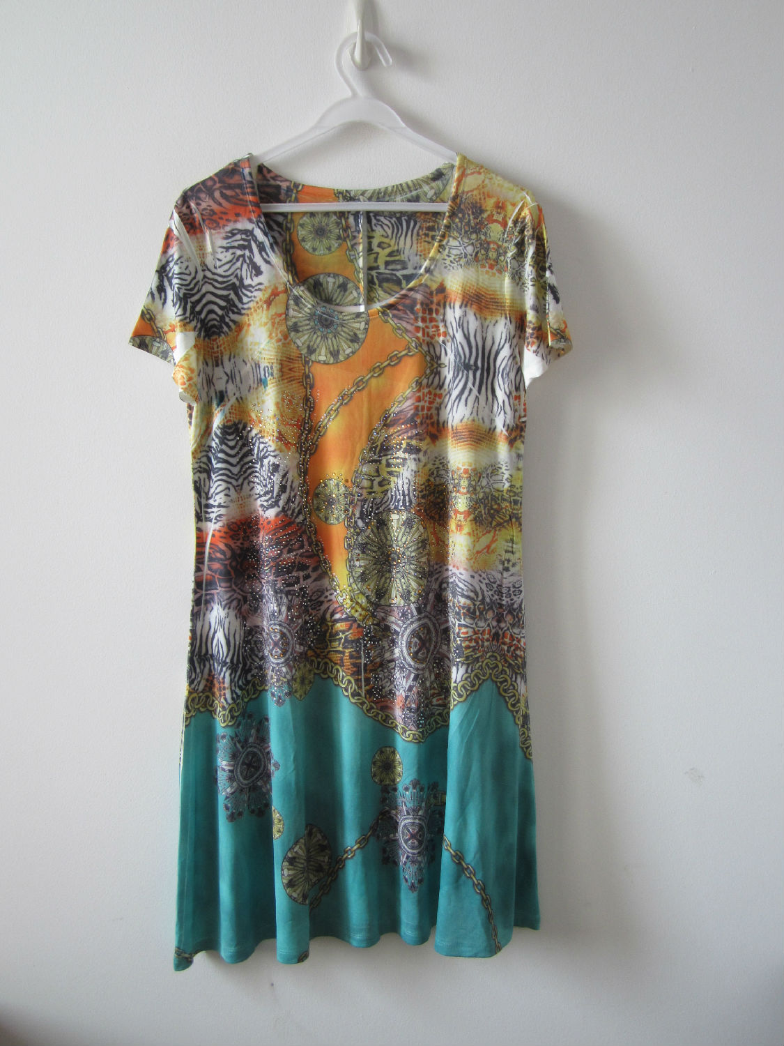 May look a little baggy when wearing it, Short sleeve, round neck, ombre, tie dye, t shirt dress