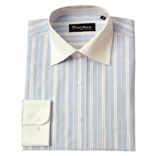 The outline dress shirt features allover vertical strips. The collar and cuffs are accented with a white hue for added style. This dress shirt is ideal for matching your smart-casual look.
