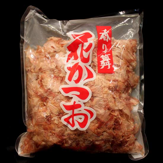 Featured is a pack of dried bonito flakes which are a traditional Japanese food. The fresh and meaty bonitos are dried and processed into these paper-like flakes. The flakes are perfect to add on Japanese dishes for some sweet taste of fish.