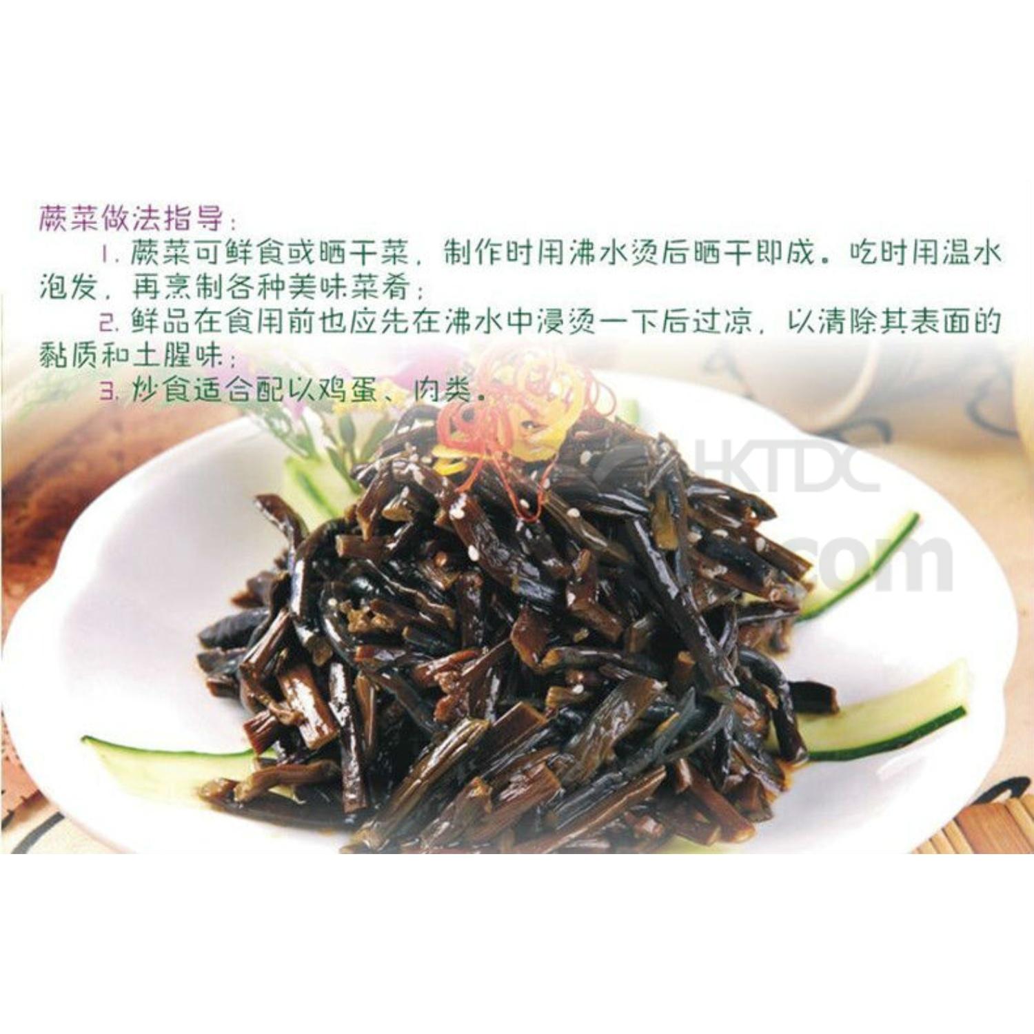 Fern hill is the leader of Wuyuan mountain wild herbs, fern hill than coniferous forest and broad-leaved forest zone, is a perennial herb. Stem leaves when young can be fried food and soup, taste very delicious. The roots are used medicinally, starch, brewing. In Japan, there are "fern Hill dish king" reputation. Mountaineer says they "the Green Fairy" is beneficial to human body, can relieve inflammation, appetizers, antiasthmatic, expectorant. Wuyuan mountain fern are exported to Beijing, Shanghai and Southeast Asia, is a famous dish in the banquet. Recipes are cold, fried bracken ridge wire such as bracken, dried dried fern can also use pork braise in soy sauce and steamed powder mix, placed below the powder mix pork steamed with. With the development of economy, mountain fern is increasingly regarded as a treasure on the table.