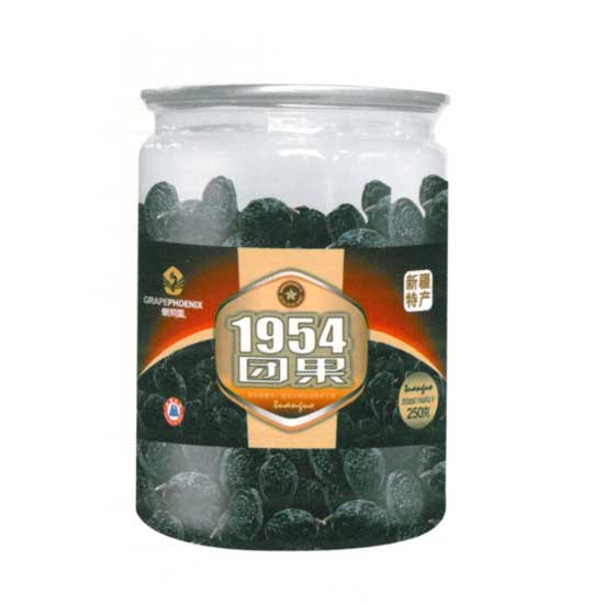 Displayed is dried grape that comes in a clear jar with a push lid. Selected from a special species, this dried grape features a healthy dark color and has a rich taste. The flesh is thick and chewy for your enjoyment.