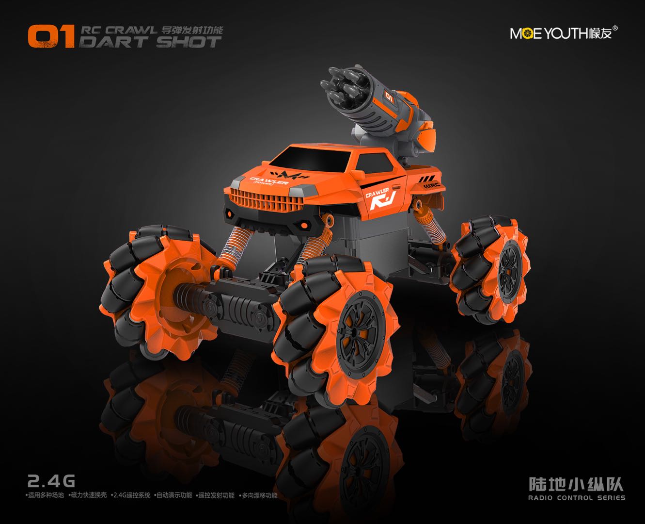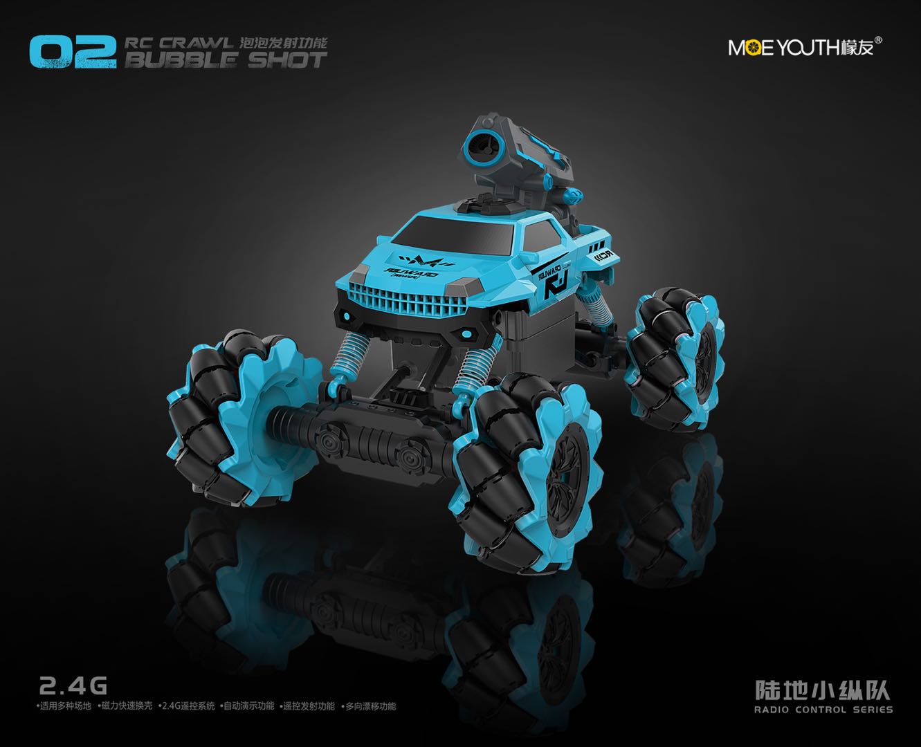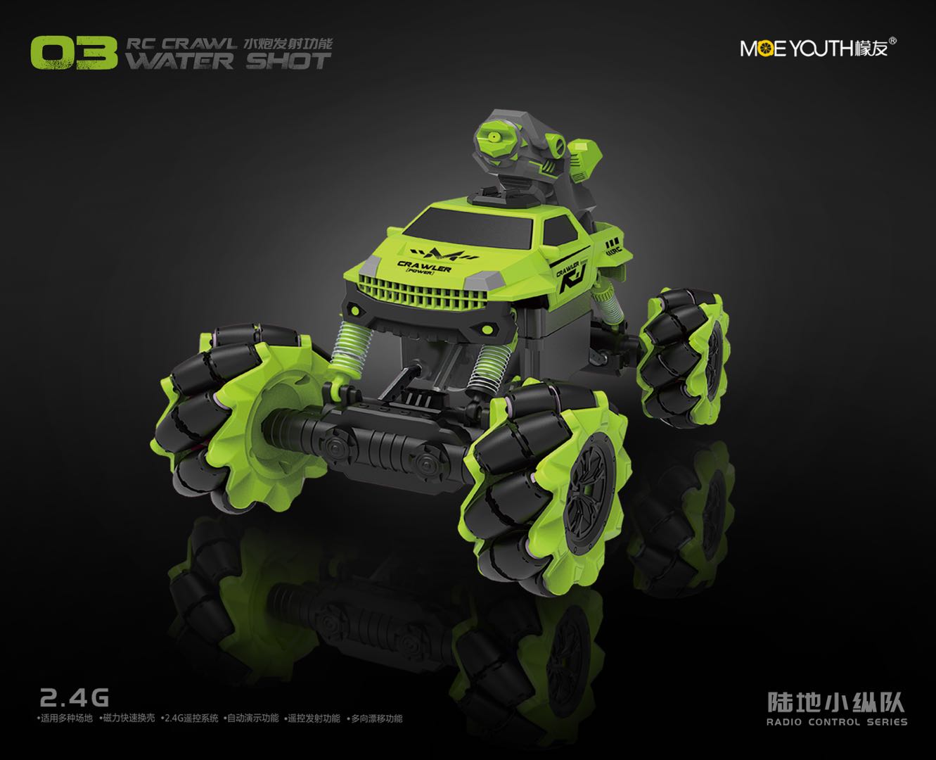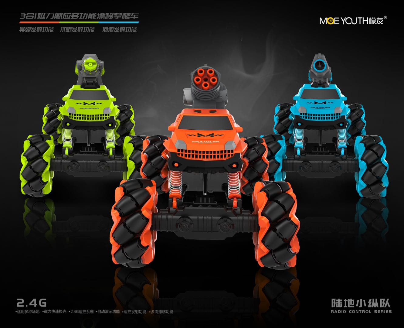 Through the tile structure to achieve a car multi-function. It can shoot missiles, water and bubbles.